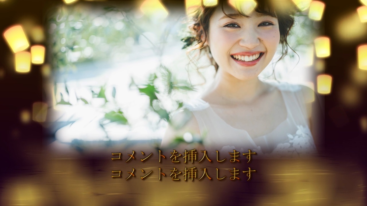 美しい光のランタンがテーマのプロフィールムービーは、あなたの人生の物語を特別に演出します。きらめくランタンに包まれながら、あなたの素敵な生い立ちを魅力的に紹介。思い出の瞬間や大切な出来事が、温かい光の中で輝きを増し、見る人の心に深く刻まれます。感動的な映像と共に、あなたの個性を引き立てる特別な演出で、記憶に残るひとときをお届けします。あなたの物語を、ランタンの光で彩りましょう。